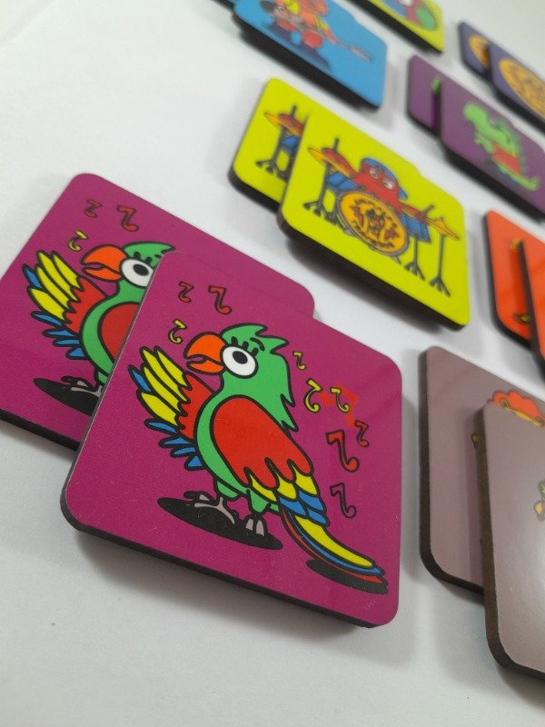 El juego contiene 20 fichas de madera. Impresas a todo color con un acabado brillante.