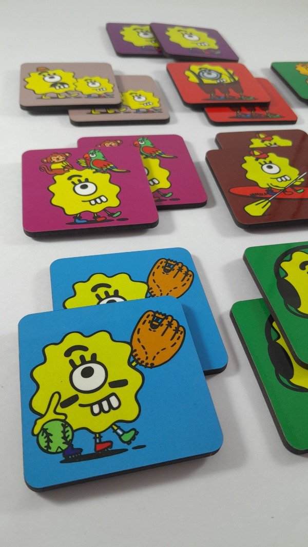 El juego contiene 20 fichas de madera. Impresas a todo color con un acabado brillante.