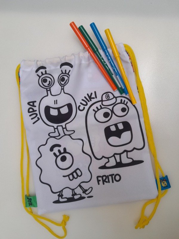 Mochila doble diseño. De un lado mágica para pintar, lavar y volver a pintar.